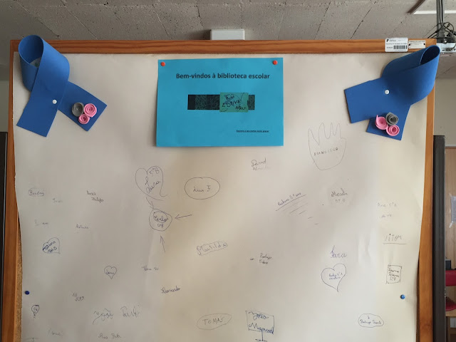 Após uma breve explicação das diversas áreas da biblioteca, os alunos aprenderam a fazer a sua inscrição no computador, participaram num jogo onde selecionaram e colocaram as imagens corretas a propósito de regras da biblioteca num mural. No final, todos escreveram o seu nome num placar a confirmar a sua presença na biblioteca.