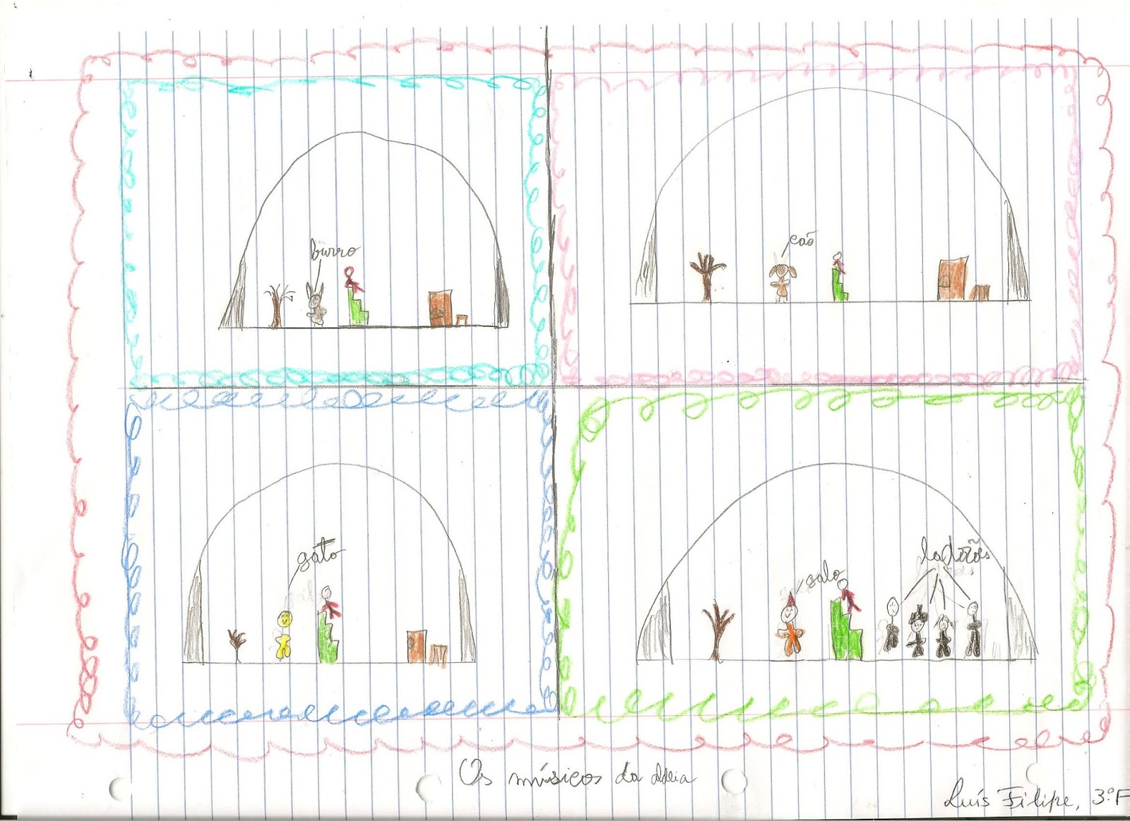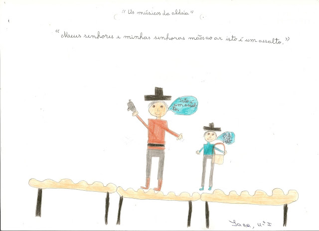 Os alunos do 3ºF e do 4ºI, após assistirem à peça de teatro "Os músicos da aldeia", apresentado pelo grupo de teatro Filandorra no CITICA em Carrazeda de Ansiães, realizaram umas ilustrações.