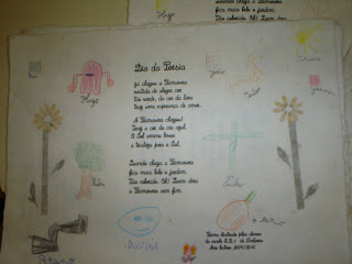 Os alunos do 4ºF e do 5ºA comemoraram este dia com uma ida à Biblioteca Municipal. A Coordenadora da Biblioteca Escolar, a Professora Cândida e a Professora Natália proporcionaram uma tarde diferente a estes alunos: viram uma Árvore Poética muito bonita, enfeitada com os seus poemas , e depois a Coordenadora da Biblioteca Municipal convidou-os a verem a exposição realizada com poemas ilustrados por eles. Viram e leram alguns dos poemas expostos. Estava tudo muito interessante!