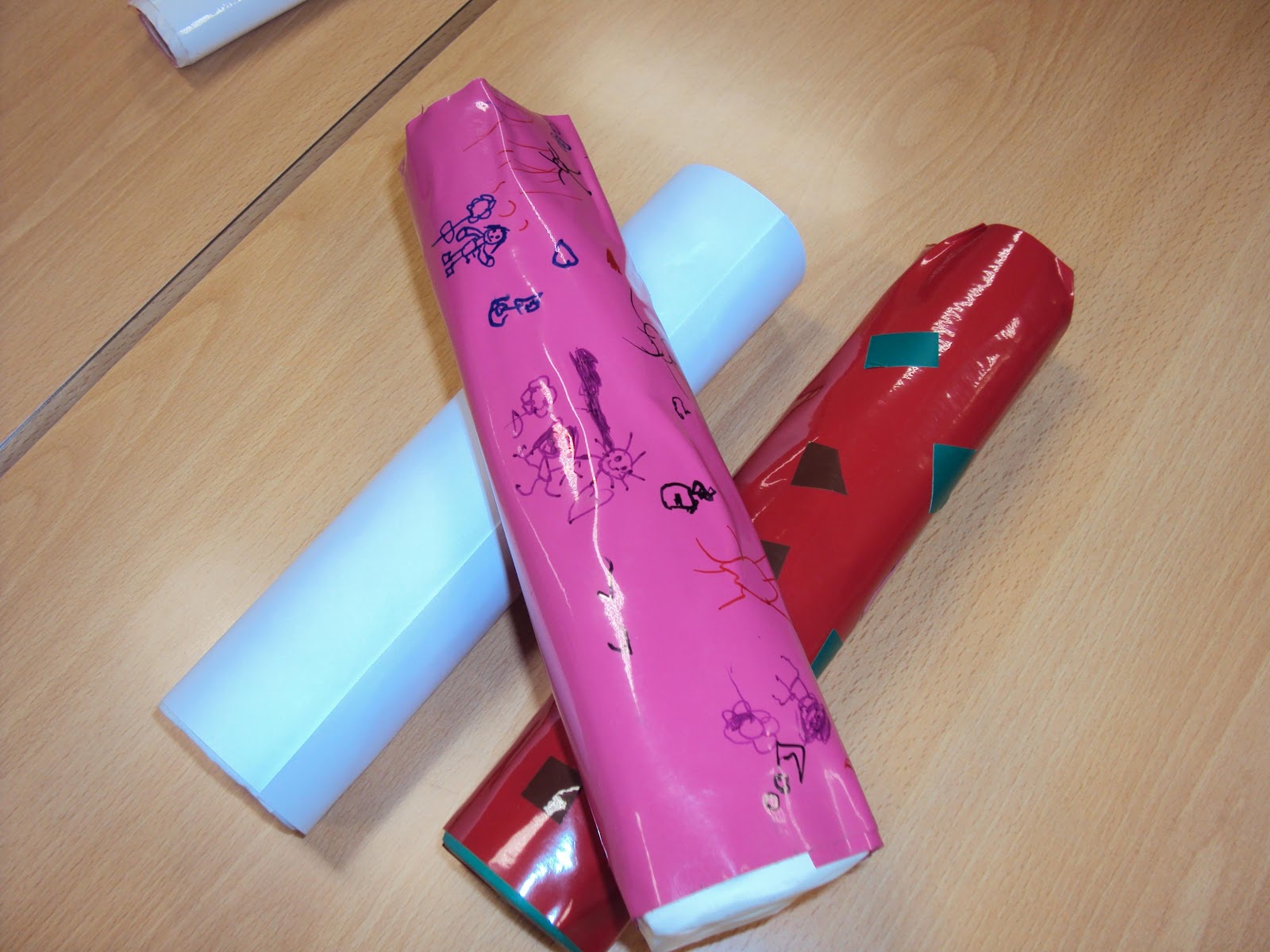 No fim enrolamos com papel e decoramos com desenhos