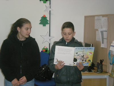 A Inês e o João leram então a história "Um Lobo Culto" aos pequeninos.