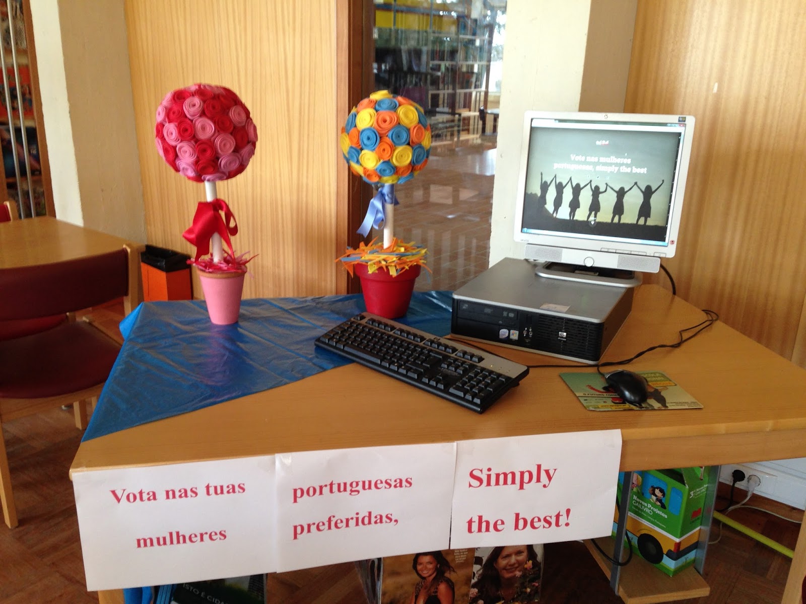 No dia do desfile, os alunos vão oferecer uns marcadores de livros com quadras alusivas à primavera, com o apoio da biblioteca escolar.